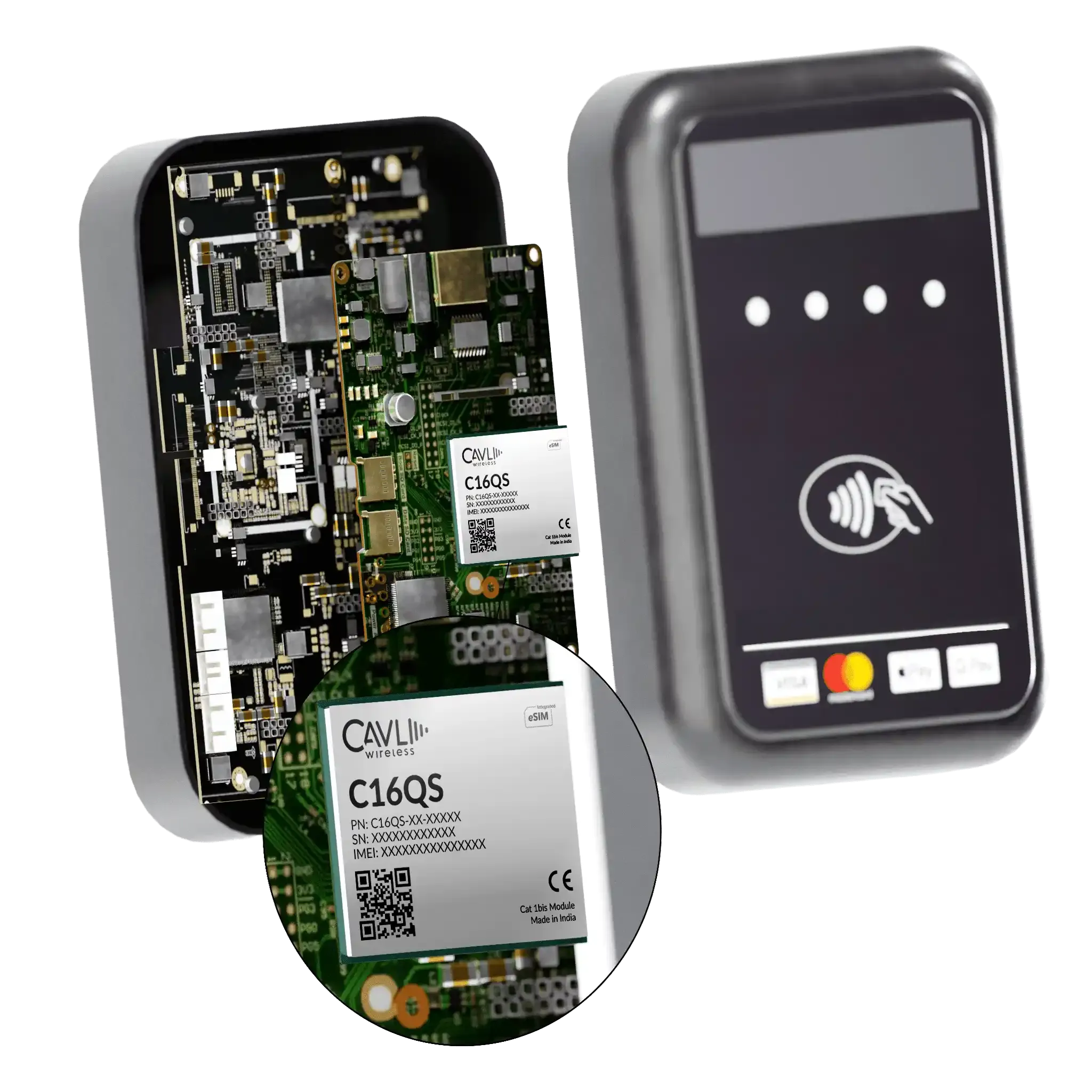Linux-based Ca1/Cat 4 Cavli IoT modules with integrated eSIM offer enhanced functionality for intermediate POS applications by directly driving display operations and supporting comprehensive payment processing capabilities. Cavli LTE Cat 1 and Cat 4 IoT modules, such as C10QM and C20QM, integrate advanced display controllers that support Display Bus Interface (DBI) displays, eliminating the need for external display drivers and reducing overall system complexity.