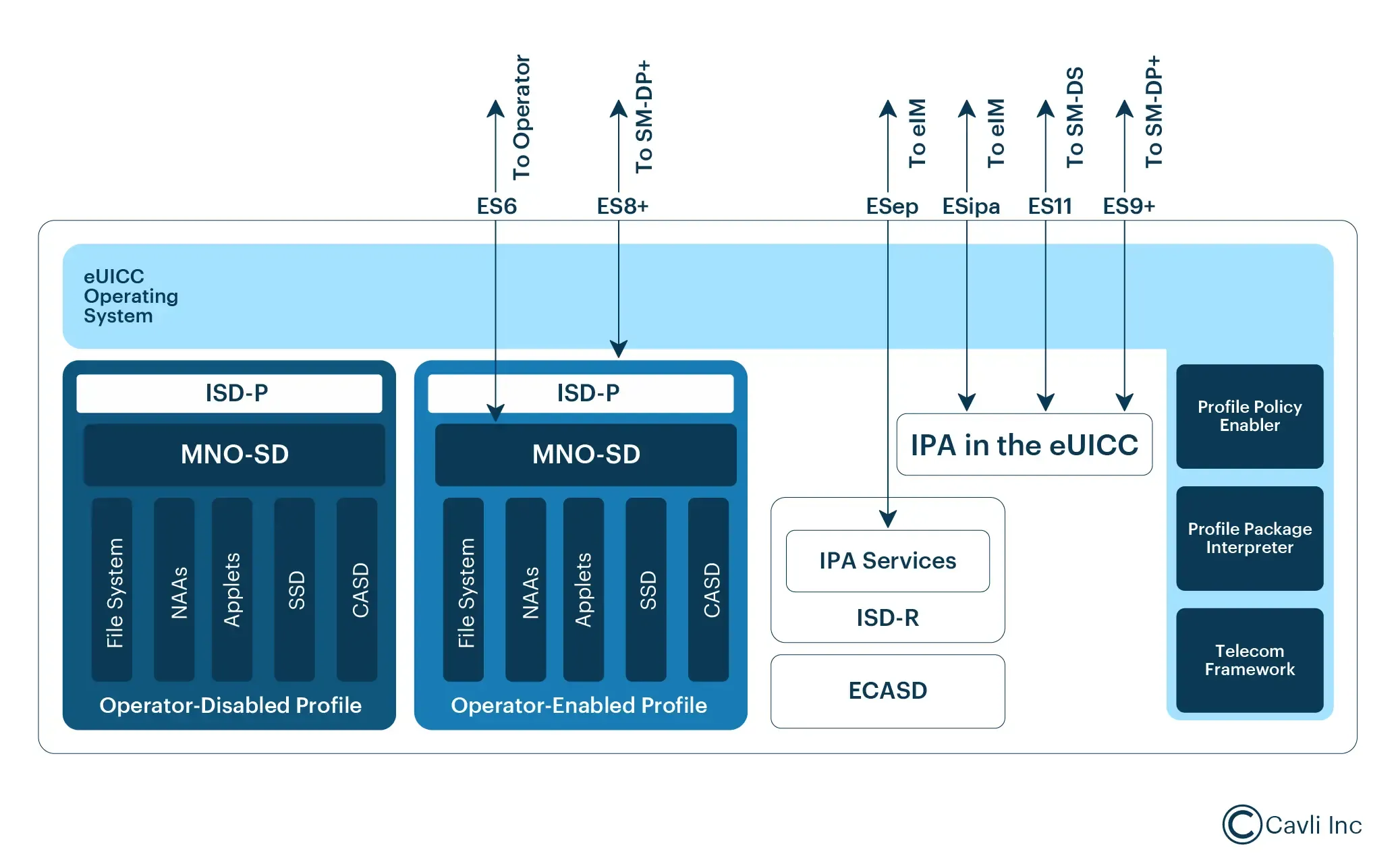 The IPA is implemented inside the eUICC. The eUICC exposes ESipa/ ES11 directly to the device, reducing integration effort and removing the need for additional host-side interface logic. It simplifies device development while preserving the same eIM-orchestrated flows.
