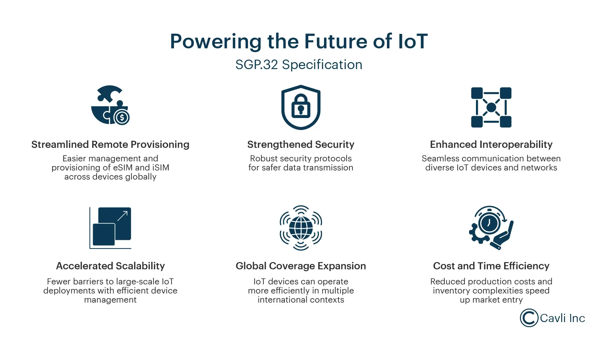 SGP.32-compatible IoT hardware supports next-gen technologies like emerging 5G IoT networks while enabling full cloud governance, activation, switching, policy updates, and diagnostics of IoT connectivity solutions; all from a central dashboard.