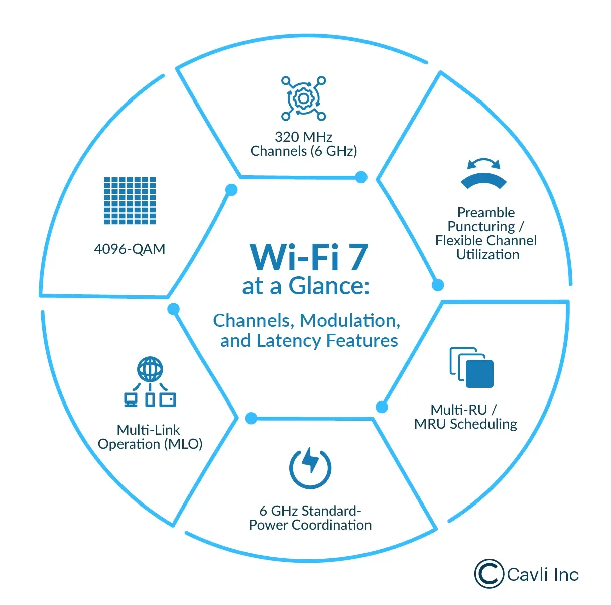 At a high level, Wi-Fi 7 improves both the usable spectrum and the way airtime is managed. It widens the “pipe” with 320 MHz channels (primarily in 6 GHz), improves spectral efficiency with 4096-QAM, and introduces smarter coordination features like Multi-Link Operation, preamble puncturing, and enhanced scheduling. The result is a Wi-Fi experience that is not just faster under ideal conditions but also more consistent when the network is busy