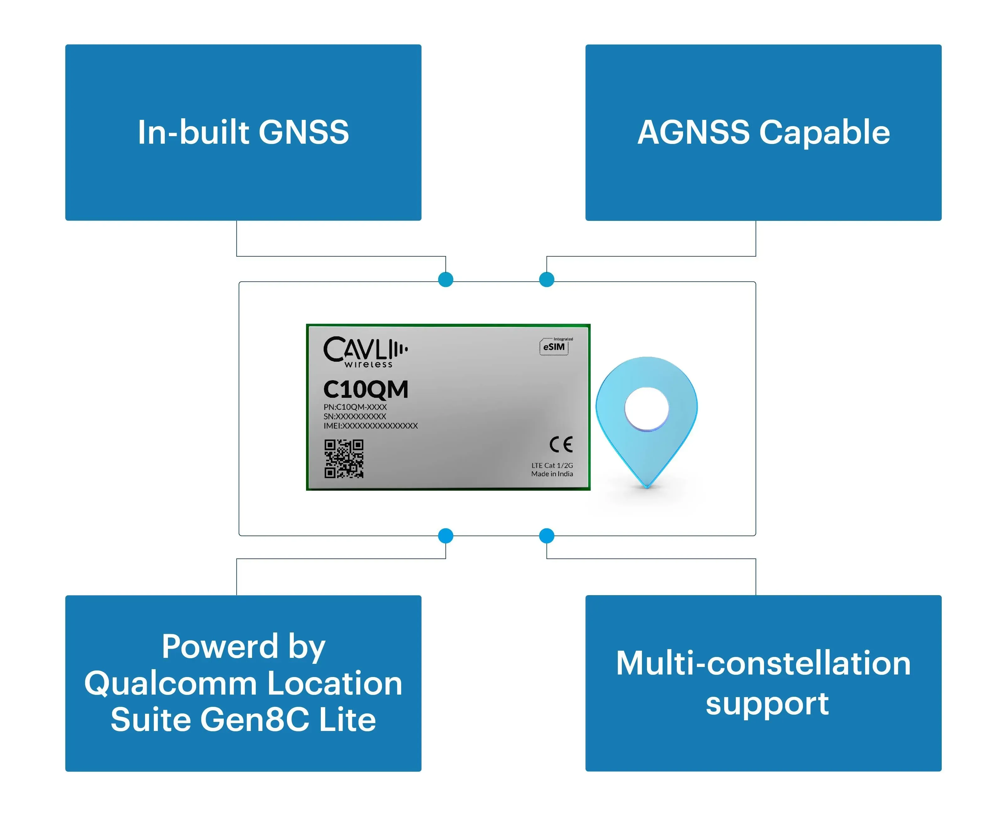 The C10QM is an IoT module designed for connectivity solutions across industries, with a focus on reliable GNSS performance. As part of Cavli Wireless’ C-series, the C10QM integrates GNSS and Assisted GNSS (AGNSS) to offer rapid, accurate positioning while addressing some of the critical hurdles faced by IoT solution developers today.