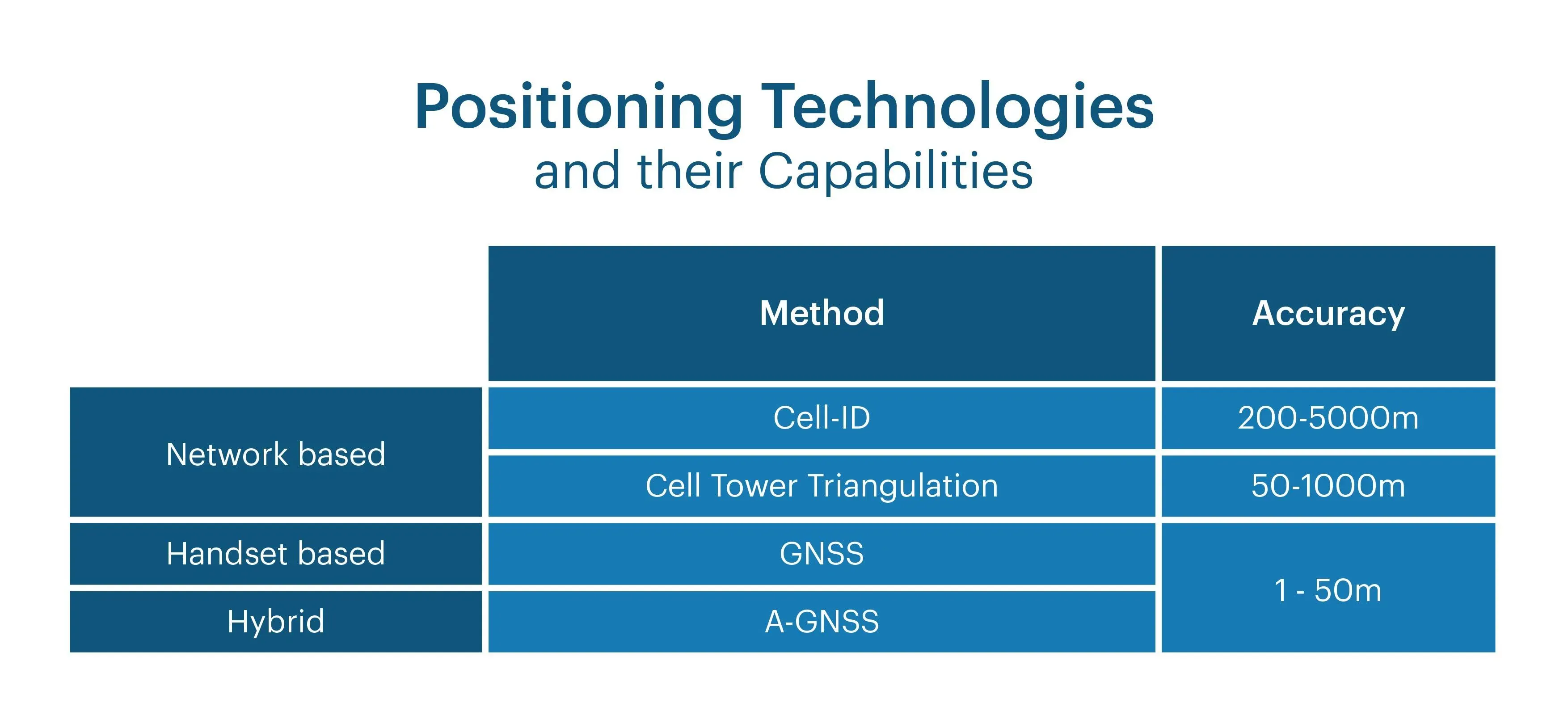 Cell-ID: A simple method that identifies the location of the cell tower the device is connected to, providing a rough estimate within a cell's coverage area.