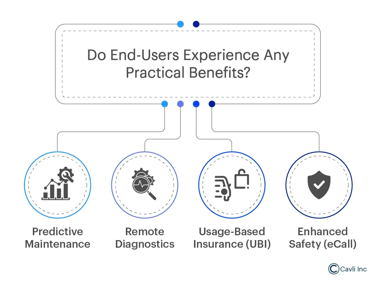 - Usage‑based insurance: Enables data‑driven insurance models.